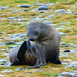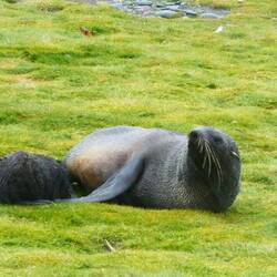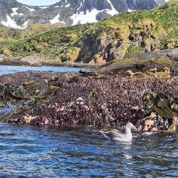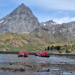In Salisbury Plain gehen wir in Südgeorgien zum erstenmal an Land. Die Bedingungen erlauben es hier mit den Zodiacs rauszugehen, aber es regnet.