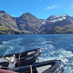 Die Wetterbedingungen lassen es zu, dass wir alle in die Zodiacs gehen.