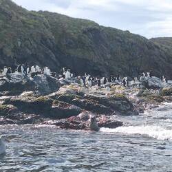 Saunders Neck. Hier leben Eselpinguine, Magellanpinguine und Königspinguine.