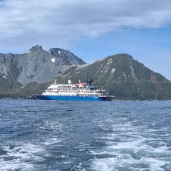 Eigentlich sollte hier eine Zodiactour stattfinden, aber der Wind hat stark zugenommen. So machen wir nachmittags einfach nur Sightseeing vom Schiff aus.