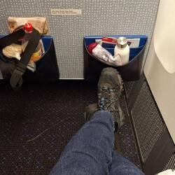 Auch die lange Wartezeit geht vorbei. Pünklich beginnt das Boarding. Wir haben viel Platz, sitzen direkt hinter der PE und machen es uns bequem.
