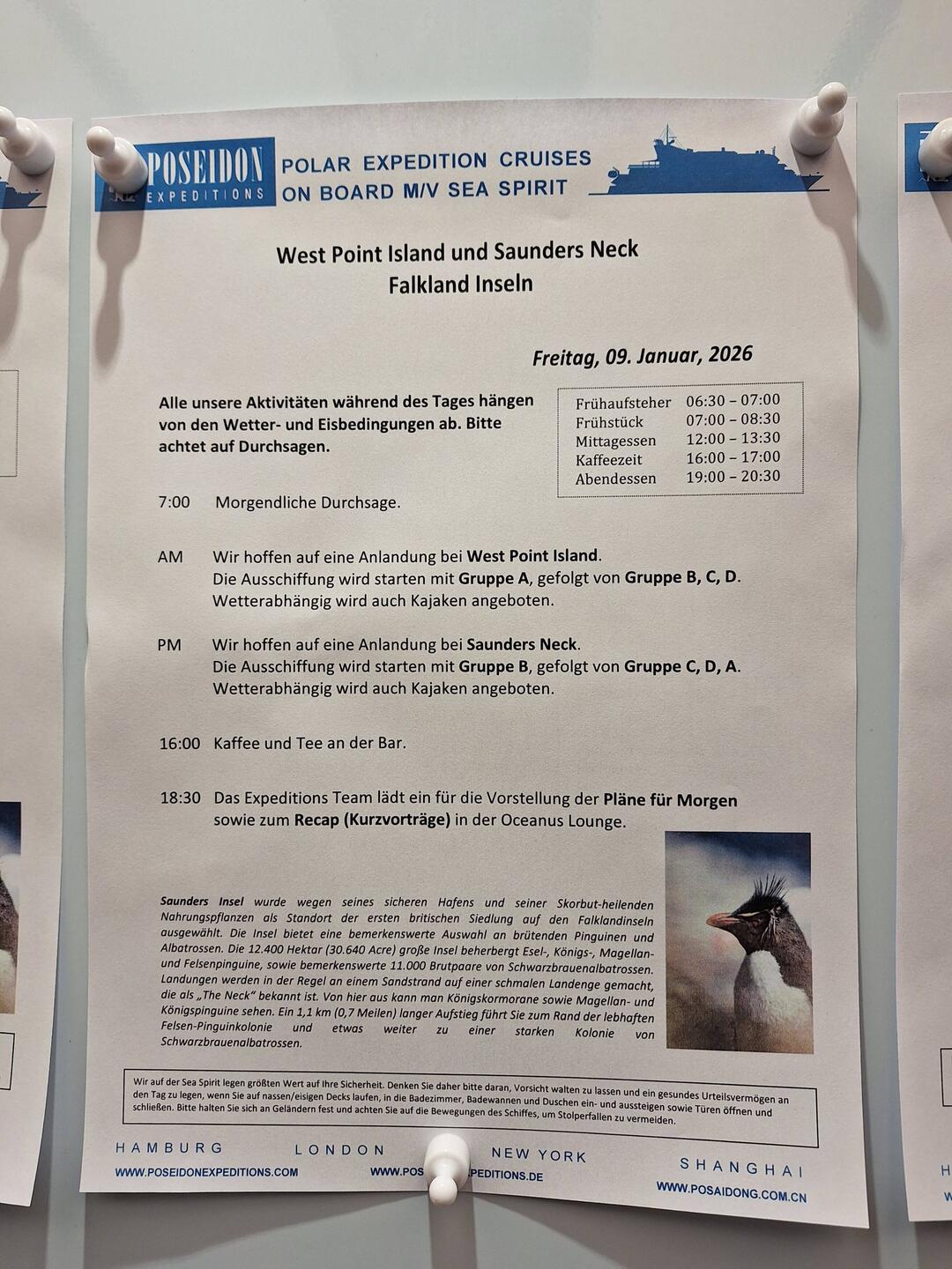 Wir sind in Gruppe A, und heute gleich als erstes dran. Wir besuchen West-Point Island, im Westen der Falkland Inseln.