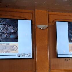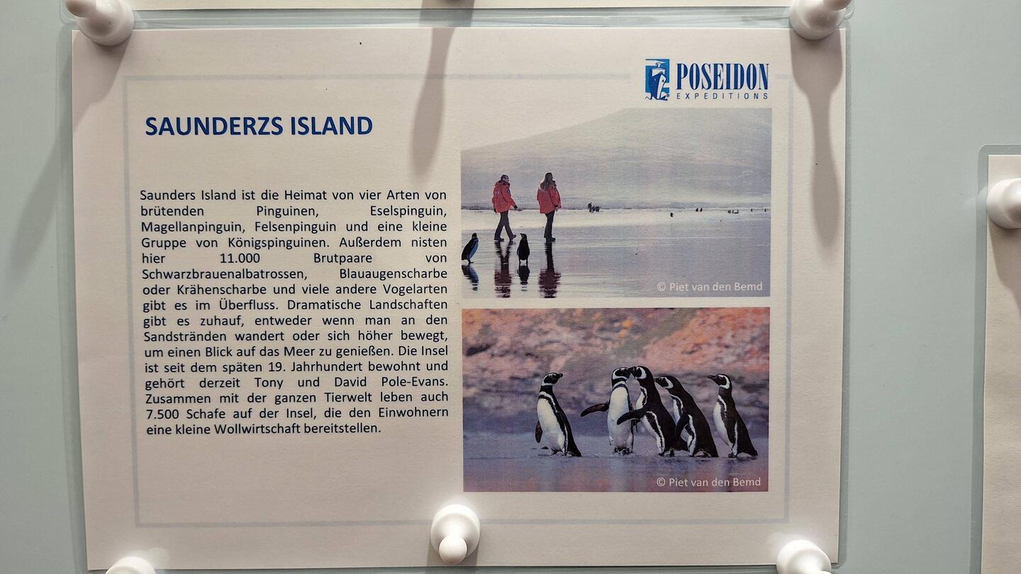 Nach dem Mittagessen machen wir uns mit einigen Mitpassagieren zu Fuß auf den Weg nach Stanley, Hauptstadt der Falkland Inseln. Unser erstes Ziel ist das Museum. Hier werden die Tiere der FalklandLæs mere