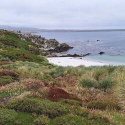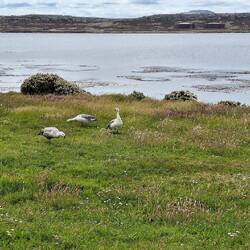 Es geht wieder früh los. Drei Busse fahren alle Passagiere zu Gipsy Cove. Ein Platz mit wunderschönen Sandstränden und Brutplätzen von Magellanpinguinen und viele andere Vögel brüten in dieserLæs mere