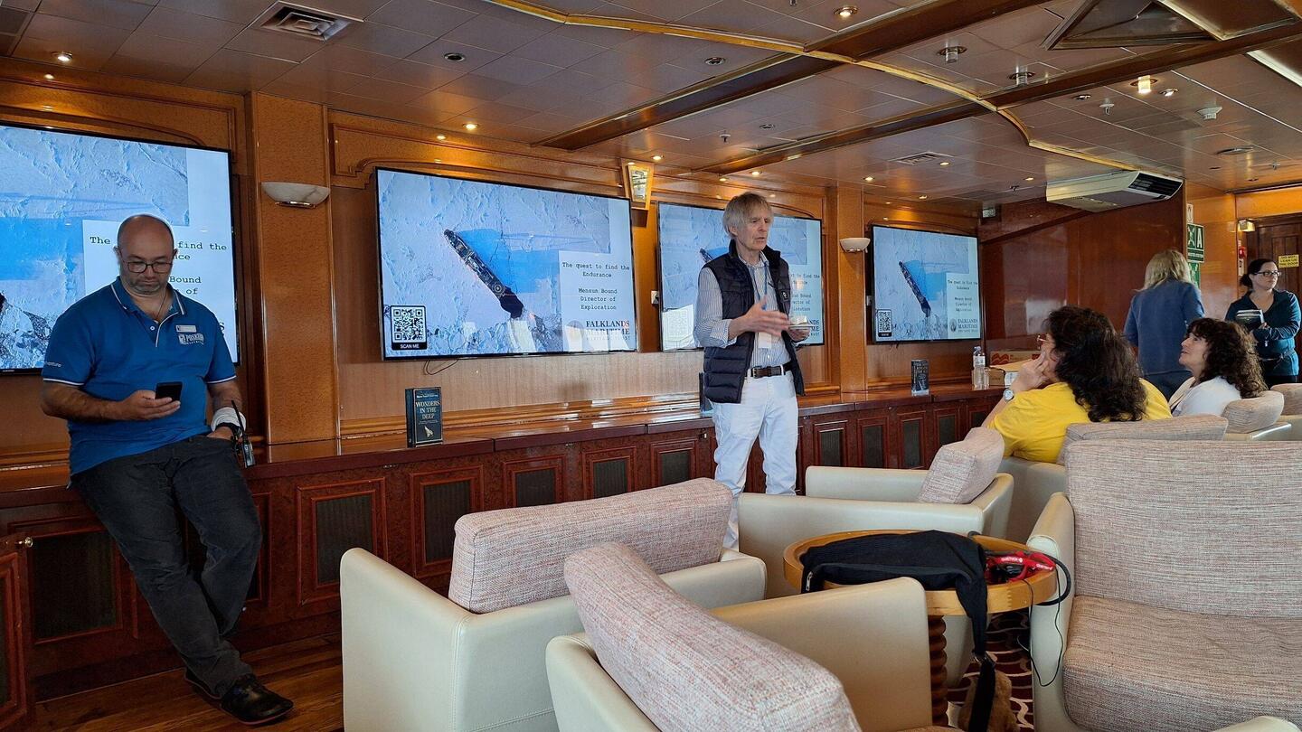 Nach unserem Ausflug findet ein Vortrag von Menson Bound statt. Er hat mit seinem Team am 05.03.2022 nach langem Suchen und vielen Rückschlägen die Dreimastbark EnduranceLæs mere