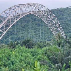 Mittwoch vormittags geht es zunächst zu einer interessanten Brücke, die nachts in fliederfarben und pink beleuchtet wird