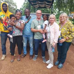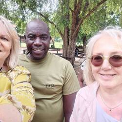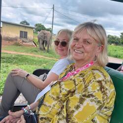 Das war wirklich ein Highlight- ein Abenteuer! Bei der Safari im offenen Jeep sitze ich vorne: links von mir der Ranger mit Gewehr, rechts Antje!