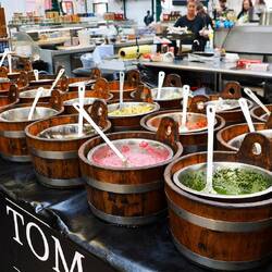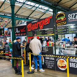 Nach der Überfahrt mit der Fähre noch 15 Minuten zum größten überdachten Markt Britanniens.