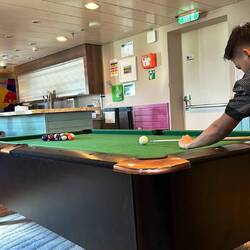 Da ich diese Reise von 8-18 Uhr arbeite, aber heute nicht so viel los war, haben wir erstmal ein paar Runden Billard gespielt und so getan als würden wir (ich und mein Partner) arbeiten.