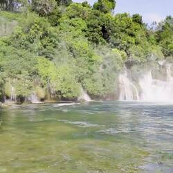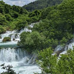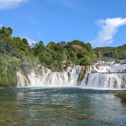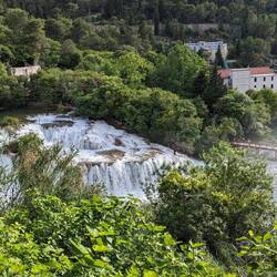 Der größte Wasserfall im Nationalpark Skradinski Buk verläuft über 17 Stufen über eine Länge von circa 800 m und eine breite von 700m. Er zählt zu den schönsten Travertin-Wasserfällen Europas.