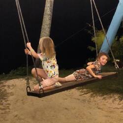 Kids after dark! Aisling, Archie and Aurora hit it off in Grande style. Triple AAA threat. Kids buffet. Kids dessert buffet. Chocolate fountain with fruit. Hide and seek and swing time