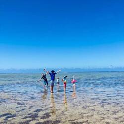 Into the pool! Then a walk out to the shallows between the reef a few hundred metres out and the shoreline. Fiji is surrounded by a barrier reef which protects the shore lines from the bigger open Czytaj więcej