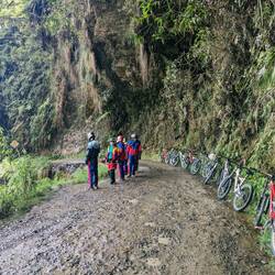 Na cesta na několika místech padala voda z vodopádů nad námi, kudy jsme museli projet. Průvodce měl navíc dobré tempo a tak si každý mohl jet, jak se mu zachtělo. Já třeba téměř nebrzdil a letěl si dolů. Je nutno říct, že ta death road vede celou dobu jen z kopce, takže člověk nemusí šlapat. Naštěstí, protože řazení na kolech nefungovalo.