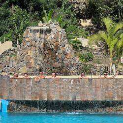 Kolem půl třetí jsme všichni dorazili až dolů a chvíli si odpočinuli, než náš převezli do nedalekého hotelu, kde na nás čekal oběd formou bufetu. Po jídle jsme se šli převléknout a naskákali do obřího bazénu. Tady jsme měli asi hodinu čas, abychom se pořádně zregenerovali.