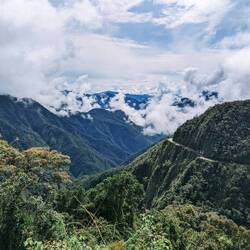 Celou dobu jsme měli krásné výhledy na údolí, kde byly zároveň vidět dlouhé srázy podél cesty. V některých zatáčkách ale byly i svodidla, takže se člověk cítil bezpečněji. Dříve tato cesta sloužila pro normální dopravu a byla jediným spojením mezi údolím a cestou v horách vedoucí do La Paz, a proto zde zemřelo tolik lidí. Nyní se ale používá hlavně jako turistická atrakce.