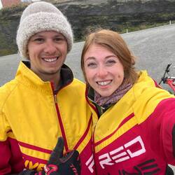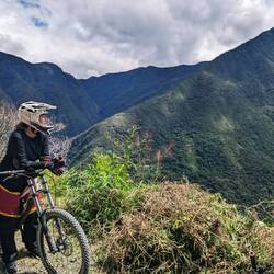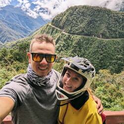 Dodávka jela po úzké štěrkové cestě asi 500 metrů, kde jsme si dali malou svačinu a opět dostali instrukce od průvodce. Niki měla šílený strach, ale i tak se rozhodla to zkusit. Ještě před naší cestou po Jižní Americe jsme se bavili o tom, že absolvujeme tuhle jízdu, to ale Niki kategoricky odmítala, protože má strach. No a teď stála s kolem nad jedním z útesů, které vedou stovky metrů dolů.
