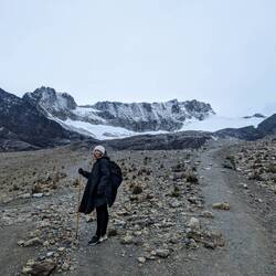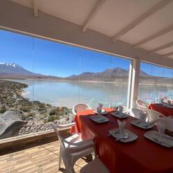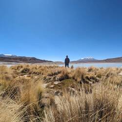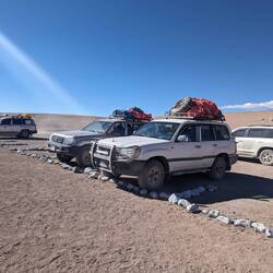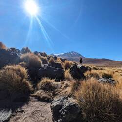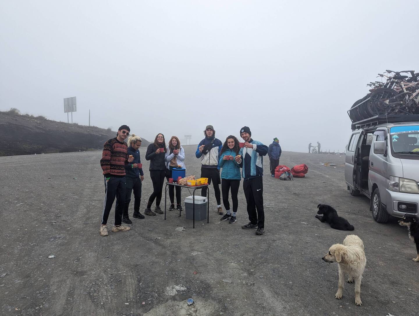 Jízda trvala přibližně hodinu a půl, než jsme dorazili k laguně Estrellani na vyhlídku La Cumbre, která se nachází ve výšce asi 4700 m.n.m. Tady jsme všichni vystoupili, dali si malou snídani a šli si obléct ochranné oblečení na cestu. Když byli všichni hotovi, dostali jsme krátký brífink ohledně pravidel na dnešním výletů a která gesta našeho průvodce co znamenají.