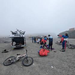 My jsme vyjeli a ze začátku jsme jeli vedle sebe, Niki se ale nadále bála a společná jízda ji nijak nepomáhala. Já se tedy rozjel dolů svým tempem a po chvíli jsme se opět setkali. To už bylo u Nikči vše v pohodě, protože už důvěřovala svému kolu a věděla, jak se chová na cestě plné kamení. Navíc pár set metrů za námi jel autobus, který měl v sobě nářadí, náhradní kolo a také se tam mohl každý účastník kdykoliv posadit, kdyby měl strach nebo už neměl chuť.