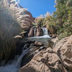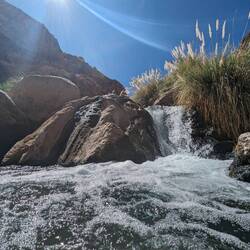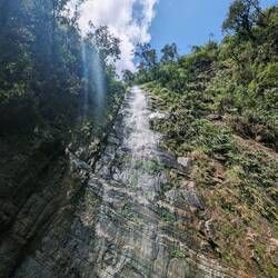 Namísto abychom vylezli zpět nahoru nám Israel zavelel, že máme jít za ním a zmizel za banánovníky. Zde přišla část jeskyň, před kterou nás původně varoval. Voda zde má sahat do půlky kolen, cíl ale prý stojí za to. Niki už měla připravené sandále, protože si nechtěla zničit svoje normální boty. Já sice počítal, že se namočím, nehodlal jsem však svůj boj vzdát a lezl po kamenech co to jen šlo, abych se namočil. Po asi 50 metrech voda skončila a my mohli dále pokračovat v suchu.