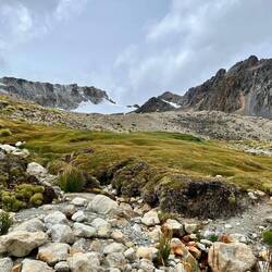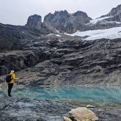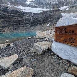 Po přibližně hodině chůze se nám otevřel pohled na lagunu Esmeralda. Voda byla krásně namodralá - sice ne tak výrazně jako Laguna 69 v Peru, ale to se nedá srovnávat.