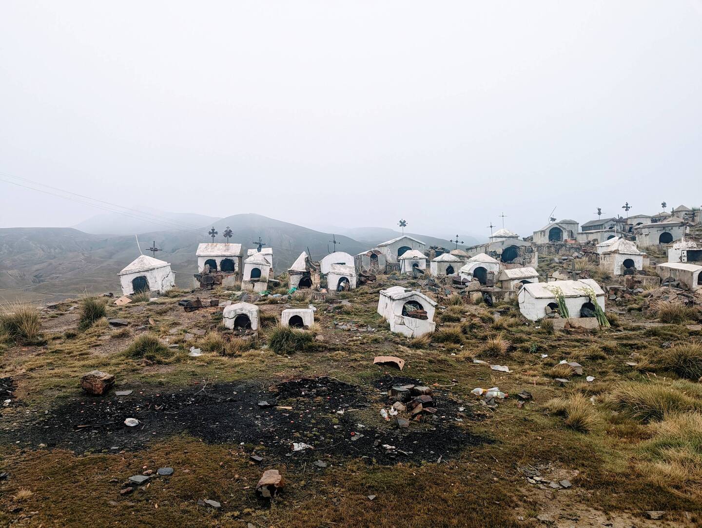 Jednalo se o malý hřbitov, který vzpomíná na zmasakrované horníky. Normálně tu je navíc nádherný výhled na horu Huayna Potosi, u nás však byla schovaná za mraky. Tady jsme navíc měli možnost koupit si něco malého k jídlu a k pití - my jsme již tradičně vzali čaj z lístků koky, protože laguna leží ve výšce 5000 m.n.m.