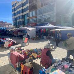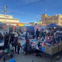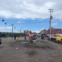Akorát to mělo háček. Problém byl, že když jsme vylezli na cílové stanici, byla ulice plná stánků a žádná auta tady nejezdila. My už slyšeli od dalších turistů, že El Alto není zrovna nejbezpečnější město a navíc je velmi chudé oproti La Paz. Museli jsme tedy projít trhem se vším, co na cestě máme a doufat, že to nebude trvat dlouho, než najdeme silnici, po které jezdí auta.