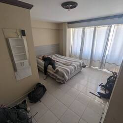 Nikča nemohla ani chodit a nějak jsme spolu dopajdali zpět do pokoje, kde akorát zůstala v posteli. My ještě rychle stihli vyměnit pokoje, abychom měli klid. Já pak vyrazil do města sám, navštívil pár míst poblíž a nakoupil jídlo a pití.