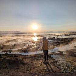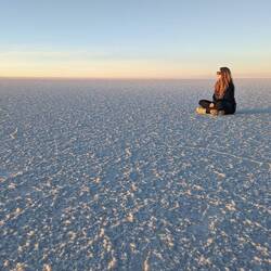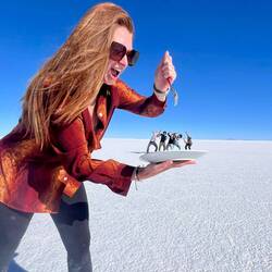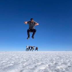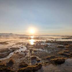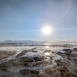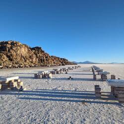Další zastávka byla u bývalých solných dolů. Bílá pokrývka na zemi však není pouze sůl, ale obsahuje také vápník a sodík. Proto některé kameny, které jsme během procházky olizovali, nebyly slané 🧐