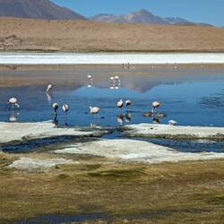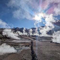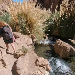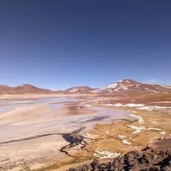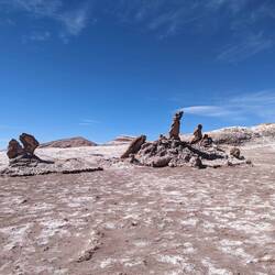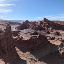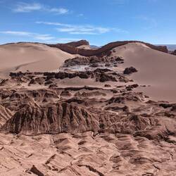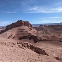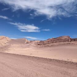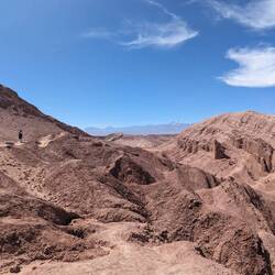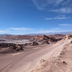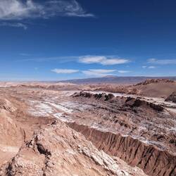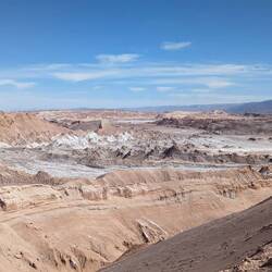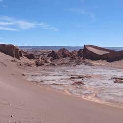 První okruh nás vedl kolem velké písečné duny dál do údolí. Podél cesty se vlnily skalnaté kopce a v dálce byla vidět vyschlá koryta řek pod pokrývkou soli. Tady jsme navštívili dvě vyhlídky, odkud bylo možné sledovat celé okolí, které vypadá jako z jiné planety. Není divu, že právě v poušti Atacama testuje NASA své roboty mířící na Mars. Právě kombinace suchá, slaného povrchu a vysokého UV záření nejlépe simuluje podmínky na Marsu.