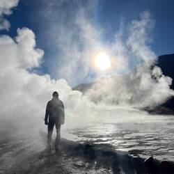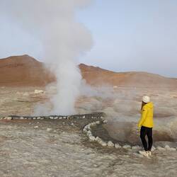 To bylo kolem půl čtvrté a my museli pomalu jet zpátky do města Calama, abychom na letišti vrátili auto a počkali na náš let. Po cestě jsme se ještě pokusili o telefonát s rodičema, pokrytí ale nestačilo a každých pár minut to vypadlo.