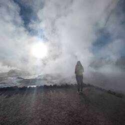 Israel nám vše vysvětloval a jeho žena Sari pro nás vše překládala. U toho měla svou tříměsíční dceru ve vaku a i přes šílený vítr nám podávala výklad. Počasí se tu extrémně rychle mění, a tak jsme na začátku měli krásně a svítilo slunce, o pár chvil později k nám dorazil vítr a déšť. Ta bouřka byla natolik silná, že mi trvalo dvě minuty, než se mi povedlo obléknout bundu. Vítr byl tak silný, že jsem díky dešti nic neviděl a neměl jsem páru, jak se dostat dovnitř. Sari s Amelií byly asi 50 metrů před námi na kopci a pokračovaly dál a my nechápali, jak to můžou zvládat.