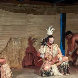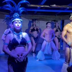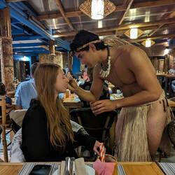 Doma jsme se v klidu dali do kupy a šli na večeři. Měli jsme rezervaci v restauraci, kde se zároveň pravidelně koná show představující místní historii pomocí tradičních tanců. Předtím nám ještě pomalování obličeje a nechali nás se vyfotit s věnci na hlavě. Během show vytáhli několik mužů z publika, včetně mě, a nechali nás chvíli tančit jejich choreografii. Naštěstí naše trápení netrvalo příliš dlouho.