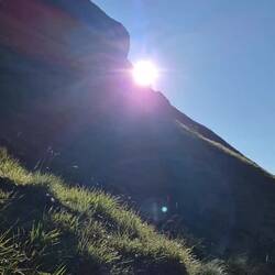 Gut ausgeschlafen stehe ich 6.30 Uhr auf und genieße die Stille und den Augenblick hier. Die Morgensonne taucht die Berge in strahlendes Licht. Es ist kalt. Ich lese mir noch ein paar der SchautafelnBaca lagi