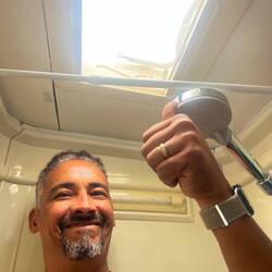 Frauchen 🙋🏻♀️ war da entspannt. Dann regnet es in der Dusche 🚿 nicht in den Caravan 🚙