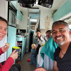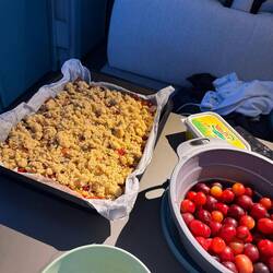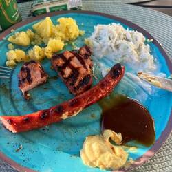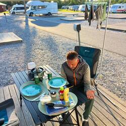 Wir hatten trotz des anfänglich kalten, windigen und später regnerischen Wetter Spass 😜. Wir haben gegrillt 🍗🍖. Und alle zusammen gegessen und gefrühstückt.