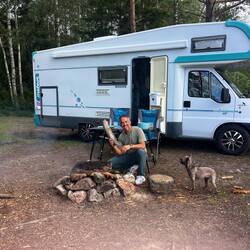 Kaum angedockt auf dem Platz 🏕️ ging auch schon das Spektakel 🥺🐕🐗 los.