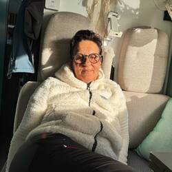 Sie bekommt Schnappatmung 🫨 sagt sie. Irgendwie wirkt sie immer unentspannt 😖. Wir haben die Nacht 🌖 oben auf einem Berg ⛰️ übernachtet.
