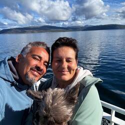 Wir 🐕🐩🐕🦺🦮🐶 haben mit unseren Herrchen richtige Sitze 💺 und es gab Orangensaft zur Begrüssung für Herrchen 🙋🏾♂️und Frauchen 🙋🏻♀️ und Leckerlies 🦴 für mich. Emil 🚙 stand sicher im Bauch der Fähre. ⛴️.