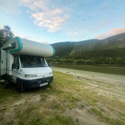 Wir haben vor, wenn überhaupt nie mehr als 4 - 5 Stunden zu fahren. Schon für mich 🐶 und sowieso! Unser nächster Schlafplatz💤 war 4,5 Stunden entfernt. Ok 👌 denn da ist ja auch Wasser 💦 und Wiese 🌳🌳und so…