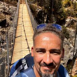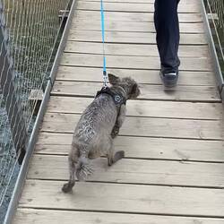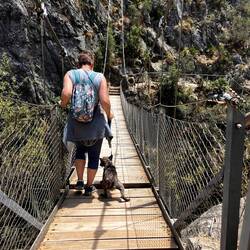 Ja 👍 wir sind so über die Brücke ohne Boden. Herrchen hat mich rübergetragen. Ich bin der Perro Aventurero ❣️