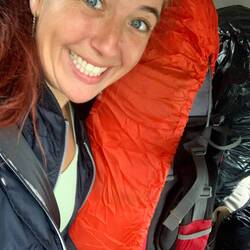 Julia and Alexandra realize that it's time to move on. The weather is not exactly inviting, so they prepare themselves and their backpacks for the rain.
