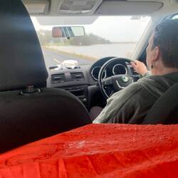 Peter gets them bacon and eggs on toast, chai latté and mocha for breakfast. Around midday, he drives Alexandra and Julia to Sale, from where they continue hitchhiking.