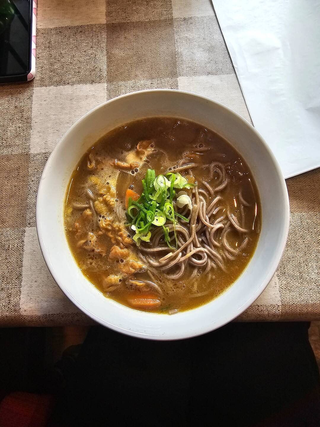 Voor lunch gingen we eten bij een klein tentje in het schattige straatje terug richting het bamboebos van Arashiyama.