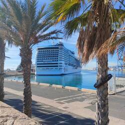 I do have a fascination for these big ships...Mediterranean Shipping Company...they of the containers...also run huge cruise ships...this one...holds 4000 passengers ..it's now left...and on its wayMeer informatie