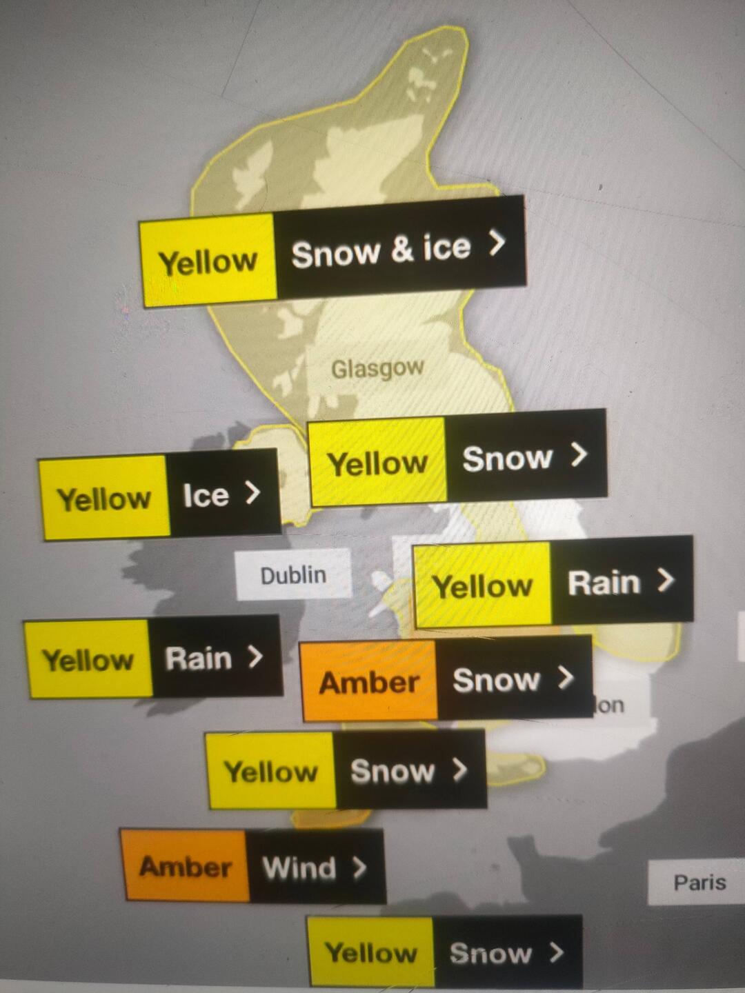 Danger to life weather warnings have been issued for parts of the UK later today.. heavy snowfall.. ice and winds.. this storm is coming up from SW..and in the path of my flight home later..Leggi altro