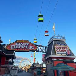 Gut gestärkt ging es danach weitere drei Stunden nach Santa Cruz, wo wir in ein kleines, charmantes Hostel eincheckten. Zum Abendessen verarbeiteten wir noch ein paar Reste und machten uns dann auf den Weg zum Main Beach. Dort warteten die Santa Cruz Wharf und der bekannte Boardwalk mit seinem Erlebnispark auf uns. Leider war die historische Holzachterbahn „Giant Dipper“ (Baujahr 1924, eine der ältesten noch betriebenen Achterbahnen der USA) nur am Wochenende geöffnet – also begnügten wir uns im Arcade-Center mit ein paar lustigen Spielen.