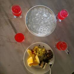 Nochmal eine kurze Balleinheit eingelegt plagte uns schon wieder der Hunger, darum schnell zurück ins Hotel und ab zum Abendessen. Steffi entschied sich für ein afrikanisches Gericht und Eva für klassische Nudeln - Steffi hat die weisere Wahl getroffen, nach guten 30min kam endlich der leckere Eintopf (geschmacklich eine 10/10), weitere 10min später erst Evas Nudeln mit Zucchini (geschmacklich eher eine 5/10), Gott sei Dank hatten wir extrem gute Fruchtsmoothies zum Überbrücken der Warte- & Hungerszeit und die Portionen waren sportlergerecht.
