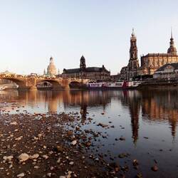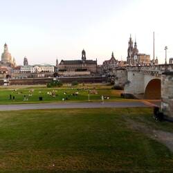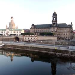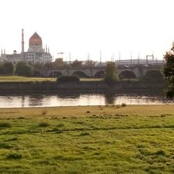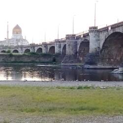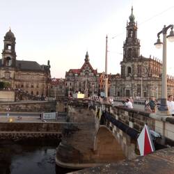 Eine Brücke weiter südlich der Marienbrücke und von dieser gut erkennbar ist die Augustusbrücke, die direkt zu Schloßplatz und Theaterplatz mit Semperoper, Zwinger, Stadtschloss, KathedraleRead more