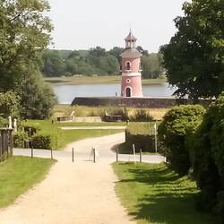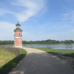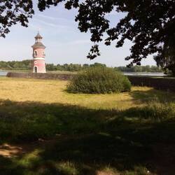 Leuchtturm auf dem Land ist ungewöhnlich, was? Und auch unnötig, alles nur Show, für die Kulisse.