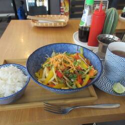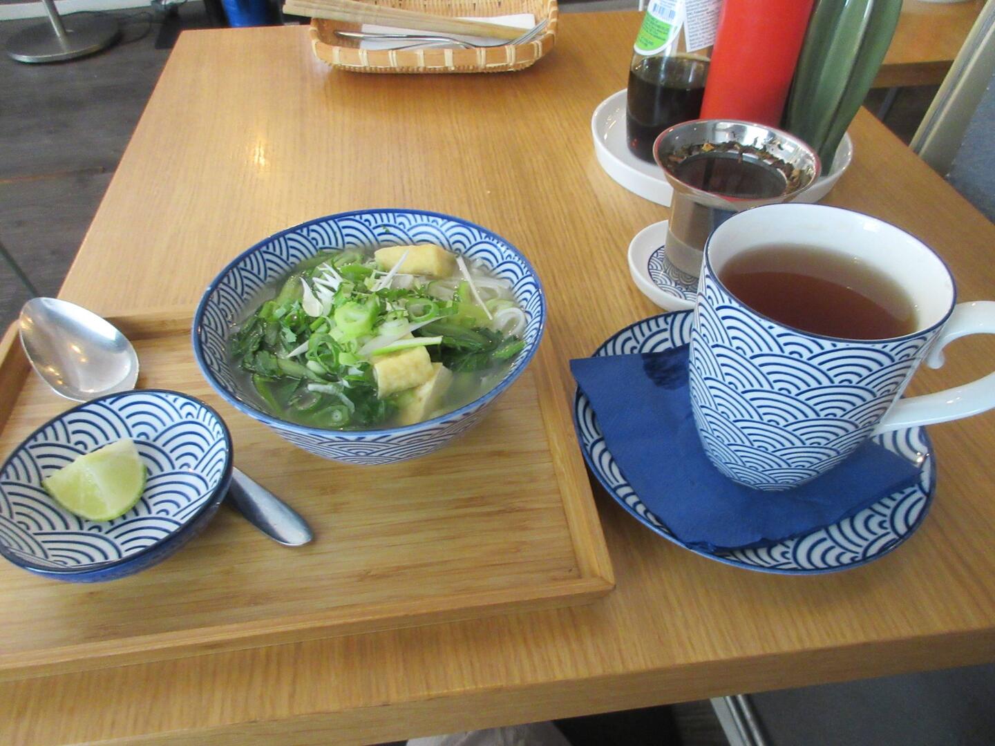 Essen! War sehr gut, das beste was ich in diesem Urlaub gegessen habe. Eine Pho Chay Suppe (mit Tofu & Pak Choi) und Xao Sa Ot Dau (Wok Gemüse mit Reis und Tofu).